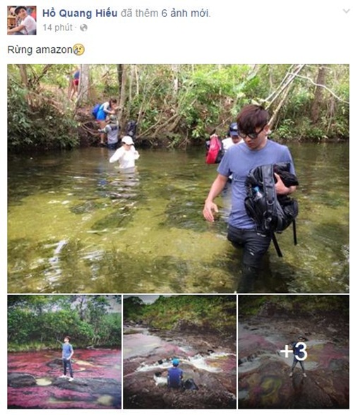 | Hồ Quang Hiếu khoe vẻ nam tính giữa rừng nguyên sinh Amazon với phong cảnh đẹp như tranh vẽ. Ảnh: FBNV |