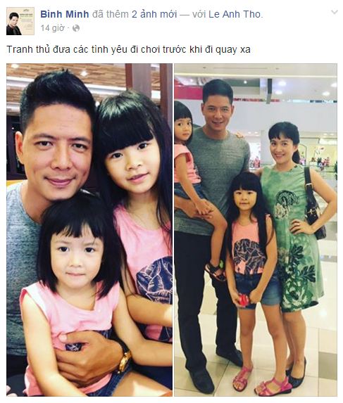 Bình Minh tranh thủ đưa vợ con đi chơi trước khi phải đi quay phim xa nhà. Ảnh: FBNV |