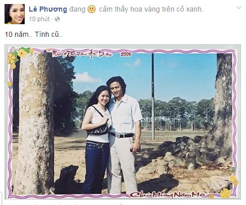 Lê Phương nhí nhảnh đăng tải lại bức ảnh 10 năm chụp cùng Qúy Bình với dòng chcia sẻ: "10 năm. Tình cũ".