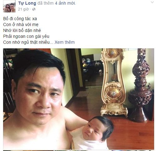 | Tự Long nhắn nhủ con gái trước khi đi công tác:Bố đi công tác xa, con ở nhà với mẹ, nhớ lời bố dặn nhé, phải ngoan con gái yêu, con nhớ ngủ thật nhiều, đừng khóc to khi tắm, bố nhớ con nhiều lắm, con gái của bố ơi!". Ảnh: FBNV |