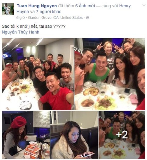 | Tuấn Hưng cùng bạn bè chúc mừng sinh nhật Thúy Hạnh. Ảnh: FBNV |