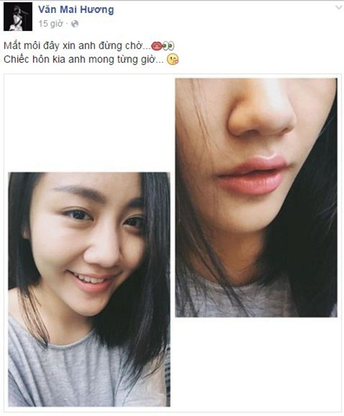 | Văn Mai Hương: "Mắt môi đây xin anh đừng chờ. Chiếc hôn kia anh mong từng giờ". Ảnh: FBNV |