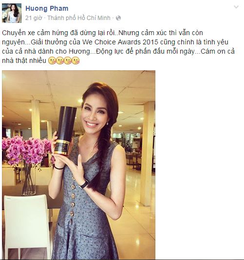 | Phạm Hương có thêm động lực phấn đấu khi nhận được giải thưởng Choice Awards 2015. |