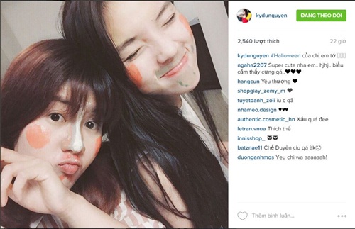 | Kỳ Duyên ngộ nghĩnh với kiểu hóa trang lạ mắt trong ngày Halloween. Ảnh: FBNV |