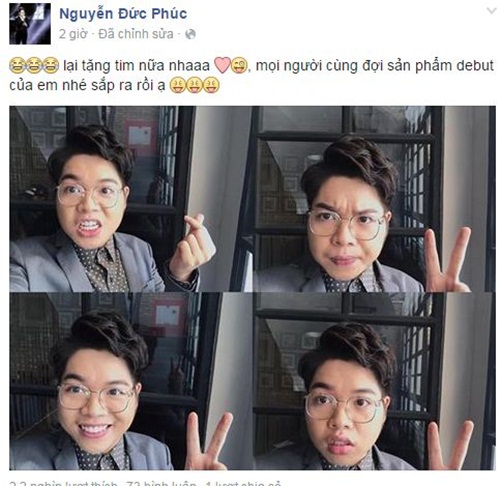 | Đức Phúc nhanh chóng bắt kịp trào lưu tạo dáng tay trái tim chụp ảnh. Ảnh: FBNV |