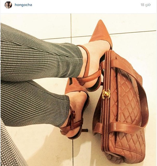 | Hồ Ngọc Hà khoe khéo giầy và túi hàng hiệu cùng tông màu. Ảnh: FBNV |