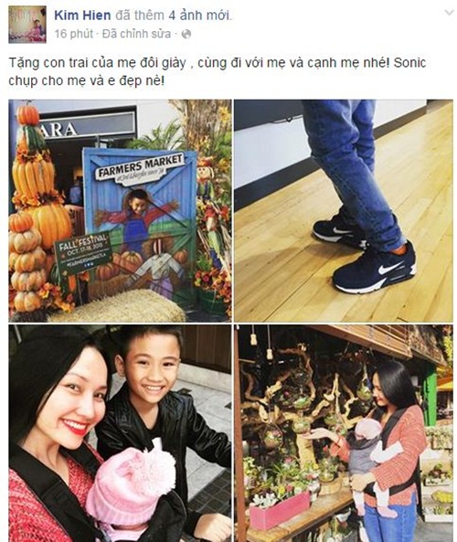 | Kim Hiền cùng các con đi chơi trong ngày đẹp trời. Ảnh: FBNV |