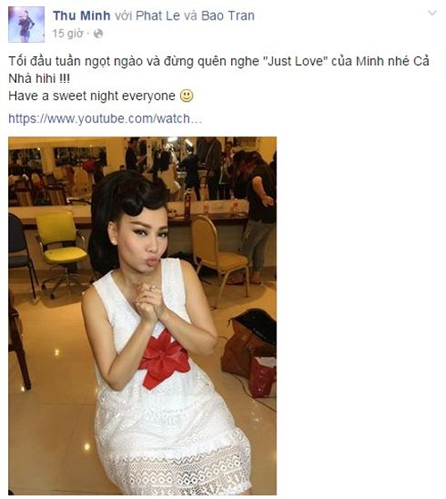| Thu Minh nhí nhảnh chu môi chụp ảnh. Ảnh: FBNV |