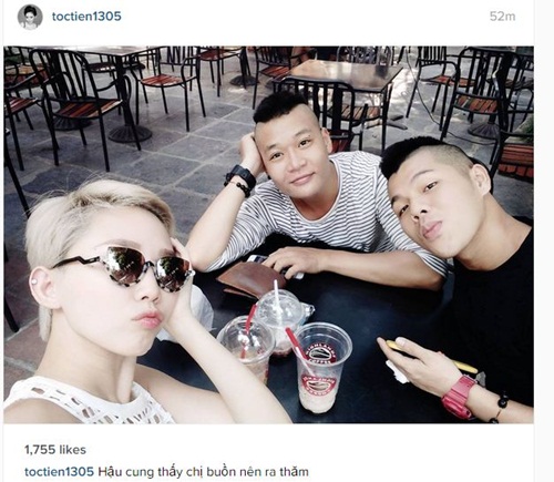 Tóc Tiên: "Hậu cung thấy chị buồn nên ra thăm". Ảnh: FBNV