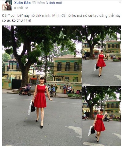 | Xuân Bắc hài hước chia sẻ những hình ảnh của danh hài Vân Dung khi xuống phố: "Cái "con bé" này nó thích mình. Mình đã nói không mà nó cứ tạo dáng thế này có ức không chứ". Ảnh: FBNV |