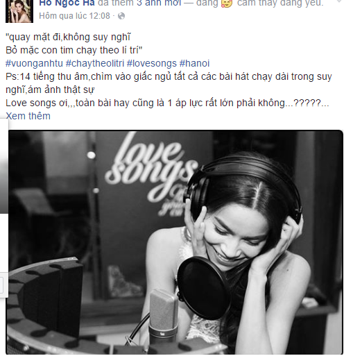 | Hồ Ngọc Hà chia sẻ: "14 tiếng thu âm, chìm vào giấc ngủ tất cả các bài hát chạy dài trong suy nghĩ, ám ảnh thật sự" |