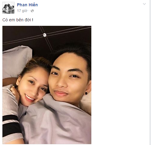 | Phan Hiển tình tứ ôm bà xã vào lòng, anh viết: "Có em bên đời". |