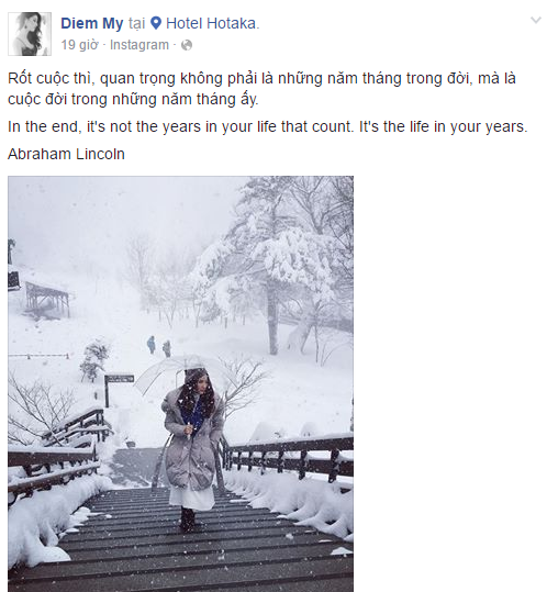 | Diễm My 9X: "Rốt cuộc thì, quan trọng không phải là những năm tháng trong đời, mà là cuộc đời trong những năm tháng ấy". |
