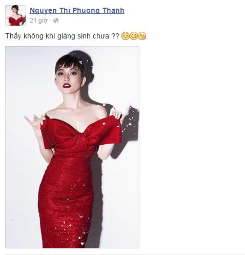 | Sĩ Thanh diện váy đỏ gợi cảm làm "cô gái Noel". |