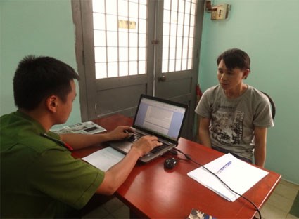 Lương Trung Thuyên (phải) tại cơ quan điều tra.