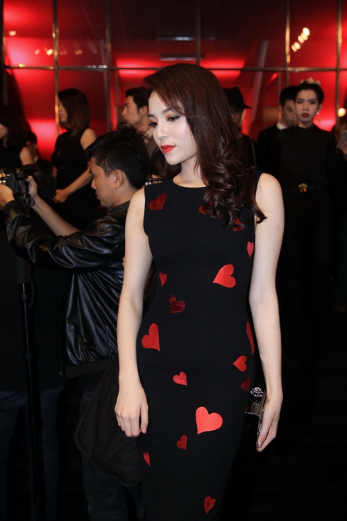 | Hoa hậu Kỳ Duyên diện trang phục điểm xuyết hình trái tim với chủ đề "Love" của NTK Đỗ Mạnh Cường. Ảnh: Hoàng DVD |