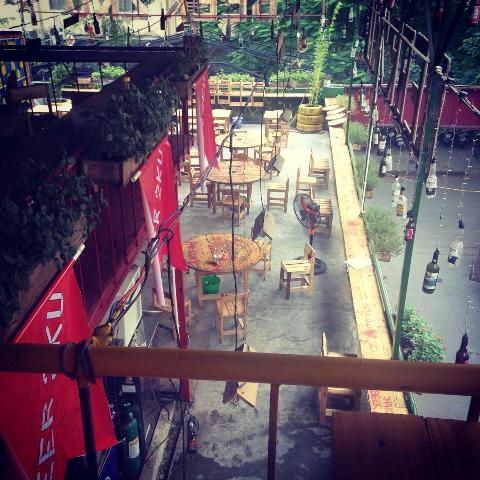 Beer 2KU đặc biệt ở chỗ chỉ sử dụng các vật liệu tái chế, thân thiện với môi trường để trang trí. Bàn ghế là từ những lô quấn cáp điện đã qua sử dụng.