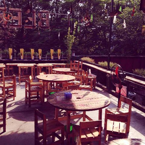 Đó là đồ mà người ta vứt đi, và tôi đi thu về. Tất cả đồ gỗ trong quán, kể cả vách gỗ đều là gỗ Pallets kiện hàng tái sử dụng, giá thành rẻ lại tiết kiệm nguyên vật liệu.