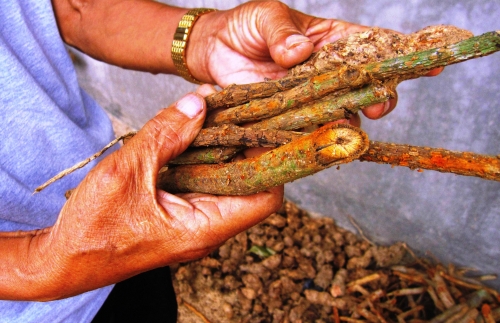 Thầy lang Hồ Thao nói về một loại thuốc mà mình hay sử dụng: “Thổ phục linh hay còn gọi là “dây chum” có vị ngọt, nhạt, tính bình có tác dụng đào thải các chất cặn bã và giải độc rất tốt. Vì vậy, tôi thường dùng loại cây này chữa đau xương khớp, thoái hoá cột sống”.