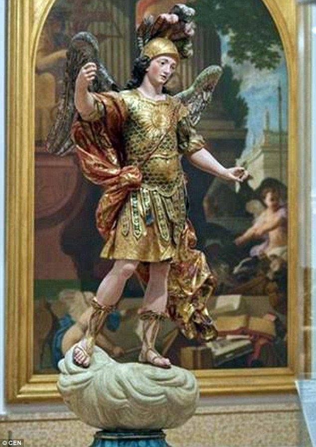 Sự cố xảy ra ở bảo tàng mỹ thuật quốc gia ở Lisbon.Du khách người Brazil này đã tạo dáng cong người về phía sau bức tượng điêu khắc thánh Michael được đặt trên bệ trong một trong những căn phòng của bảo tàng.