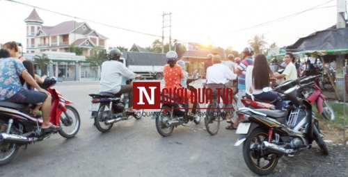 | Dù đã xế chiều nhưng vẫn còn khá đông người dân tụ tập theo dõi vụ án (ảnh Thanh Lâm). |