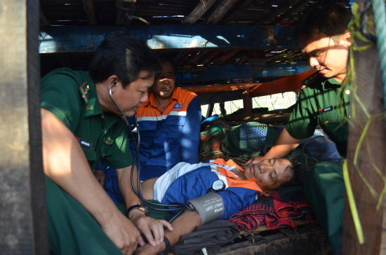 Quân y BĐBP khám sức khỏe cho các thuyền viên. |