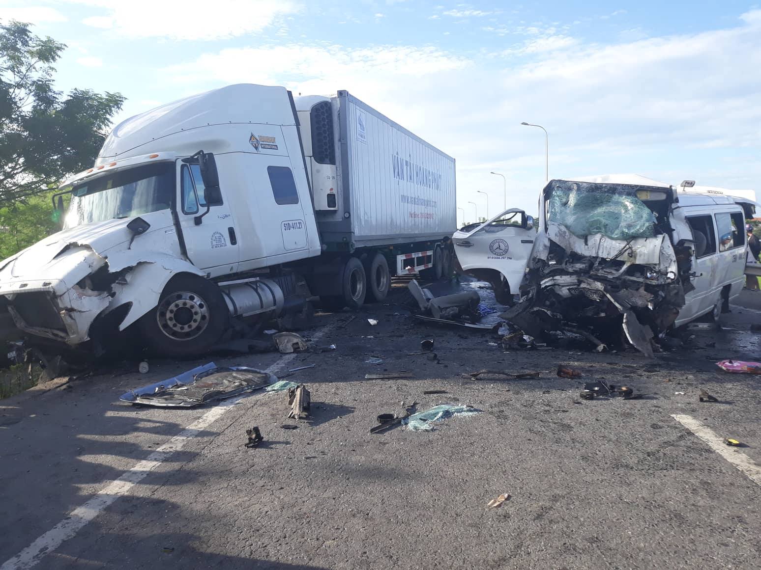 Khi đến Km 950+700 quốc lộ 1, đoạn qua xã Điện Minh, thị xã Điện Bàn, Quảng Nam, xe 16 chỗ bất ngờ đấu đầu ôtô đầu kéo mang biển TP.HCM chạy hướng ngược lại.