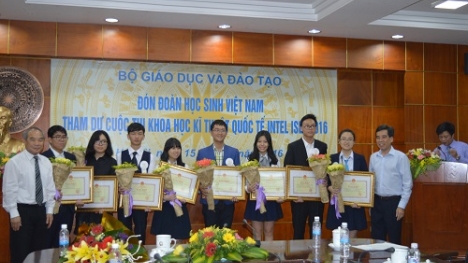 Thay vì tổ chức trao thưởng ngay tại sân bay Nội Bài khi đoàn học sinh về trở về nước, lễ đón đoàn và trao giải thưởng cho học sinh tham gia Hội thi Khoa học kỹ thuật Quốc tế năm nay diễn ra ngay tại trụ sở Bộ GD-ĐT vào lúc 12h đêm.