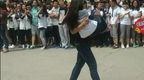 Nam sinh bế bổng, kiệu bạn gái lên vai rời khỏi trường thi ĐH