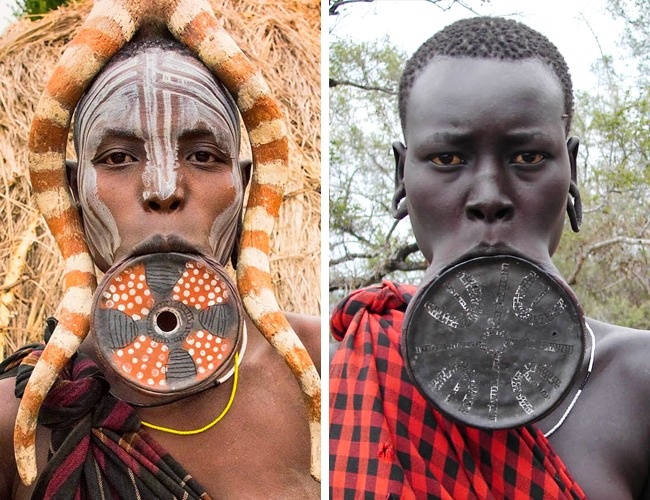 Bộ tộc Suri cũng có cách làm đẹp tương tự. Họ là một bộ tộc châu Phi nhỏ sống ở một khu vực ở phía tây nam Ethiopia dọc theo biên giới Sudan. Họ là một trong nhiều bộ lạc trong thung lũng Omo màu mỡ, và ước tính có khoảng 20.000 người.