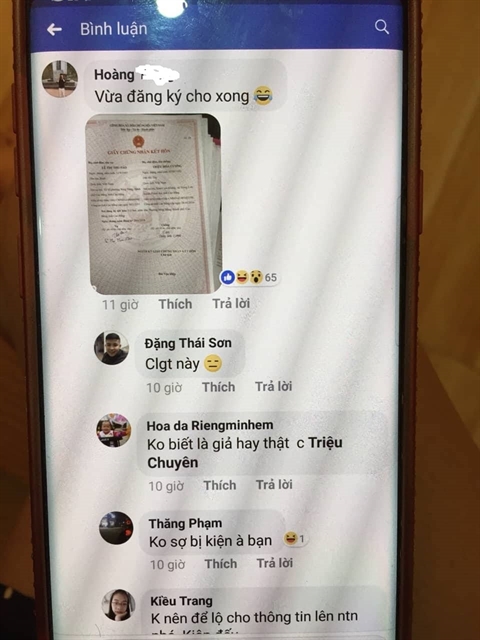 Cũng chia sẻ với nguồn trên, chị Sao mong muốn tìm được người đăng hình ảnh giấy đăng ký kết hôn của vợ chồng chị lên mạng và muốn biết mục đích của họ là gì. "Tại sao lại tự ý đăng thông tin cá nhân của chúng tôi khi chưa được sự cho phép? Tôi cũng không muốn người ta phải chịu hình phạt nào của pháp luật nhưng người đó phải biết cái sai của mình đến gặp vợ chồng tôi nói chuyện, xin lỗi và đăng cải chính những thông tin trên mạng” - cô dâu 61 tuổi khẳng định.