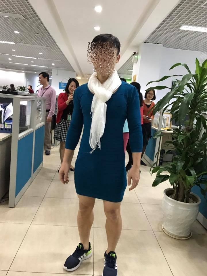 | Nam thanh niên khác mạnh dạn mặc váy đi làm. Ảnh: Internet. |