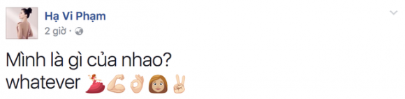 Trước đó, trên trang cá nhân của người đẹp, Hạ Vi bất ngờ gây bão khi đăng dòng trạng thái: "Mình là gì của nhau, sao cũng được!". Phát ngôn được cho là cách Hạ Vi đang mỉa mai, hằn học câu chuyện ồn ào mấy ngày qua của Cường Đô La và Hồ Ngọc Hà.
