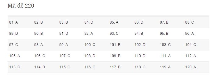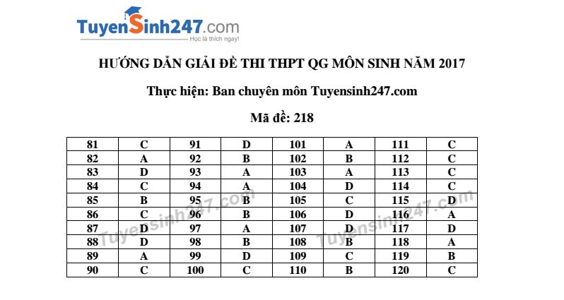 Xem đáp án tất cả mã đề thi Khoa học tự nhiên môn Vật Lý - Hóa học - Sinh Học THPT quốc gia 2017 TẠI ĐÂY.