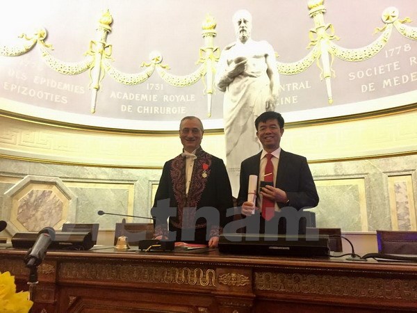 Giáo sư, tiến sỹ Phạm Văn Thức tại buổi lễ trao nhận chức danh Viện sỹ Viện Hàn lâm Y học quốc gia Pháp. Ảnh: Vietnam+ |