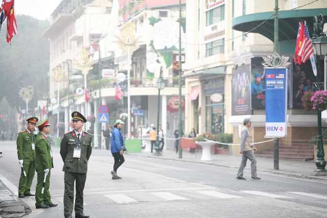 | An ninh quanh khu vực khách sạn Metropole Hà Nội - nơi diễn ra Hội nghị thượng đỉnh Mỹ - Triều Tiên lần 2. |