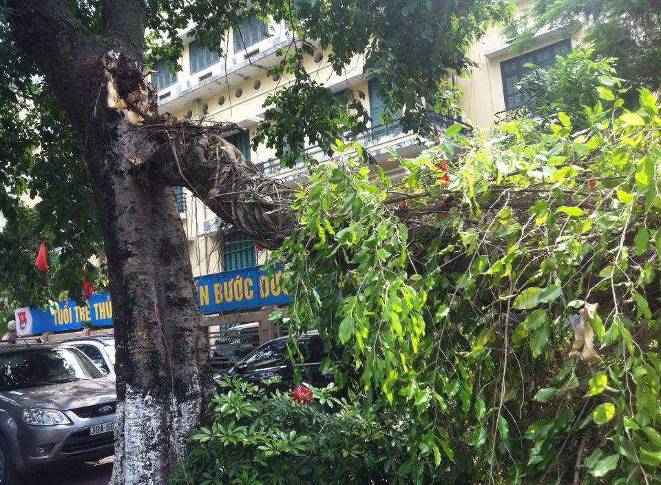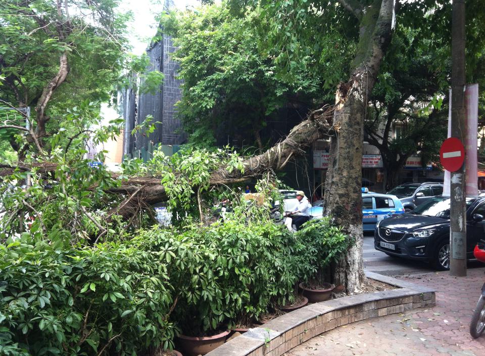 Thời điểm trên, rất đông người đang lưu thông trên đường bỗng dưng một cành cây cơm nguội to (đường kính cỡ trên 50cm) tách từ thân cây đổ sập xuống đường. Cùng lúc đó, một nữ sinh đang đi xe đạp điện đến đoạn gần đó đã bị cành cây rớt trúng đầu.