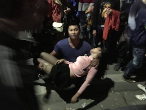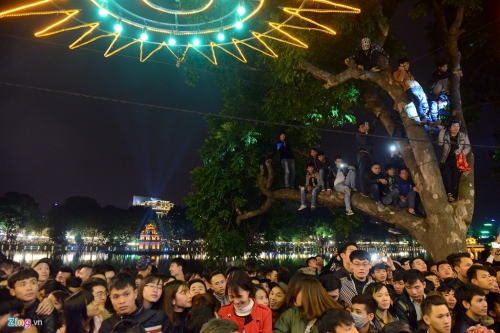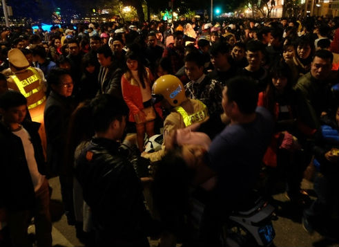 Đêm giao thừa năm mới 2016, dòng người đông đúc đổ về khu vực bờ hồ Gươm (Hà Nội), có nhiều trường hợp những cô gái trẻ mệt đến ngất xỉu vì chen lấn.