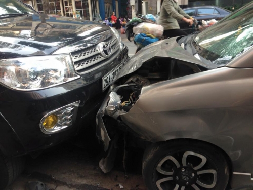 Tin nhanh từ một số người dân chứng kiến vụ tai nạn cho biết, khoảng thời gian trên, chiếc xe KIA Morning BKS 29A 46.257 lưu thông theo hướng Lê Đại Hành ra ngã tư giao cắt với Trần Khát Chân bất ngờ mất lái ngoặt sang phía lần đường ngược lại, đâm thẳng vào xe máy Honda Wave s và xe ô tô Fortuner.