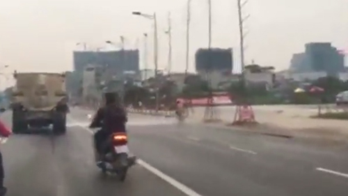 "Hung thần" xe phun nước trên tuyến đường Võ Chí Công, quận Tây Hồ, Hà Nội. Ảnh chụp màn hình |