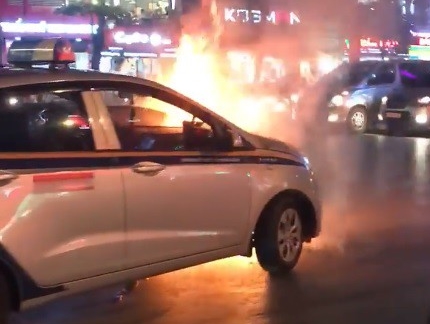 | Ô tô bốc cháy như đuốc trên đường Trần Duy Hưng. |