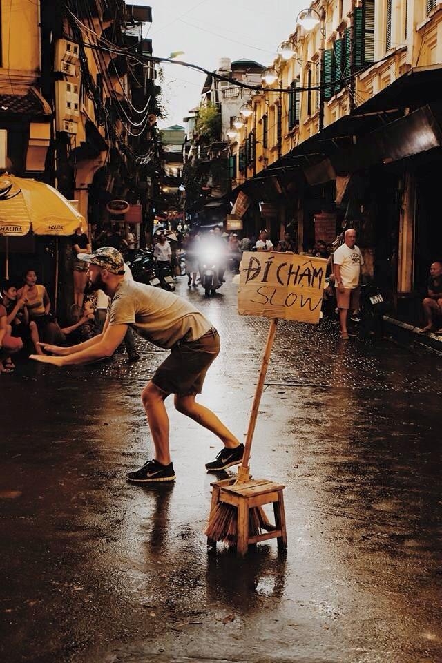 Chỉ sau vài phút đứng điều tiết giao thông, các phương tiện khi tới đây đã chú ý và người bị ngã xe cũng giảm bớt. Một vài người dân sống xung quanh thấy vậy cũng vào giúp vị khách Tây.