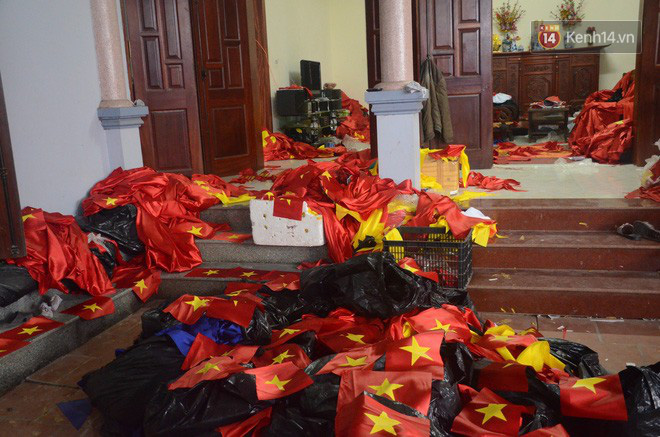Những người thợ may tại cơ sở in lá cờ đã phải thức thâu đêm để làm kịp hàng ngàn lá cờ cung cấp cho người hâm mộ cổ động cho