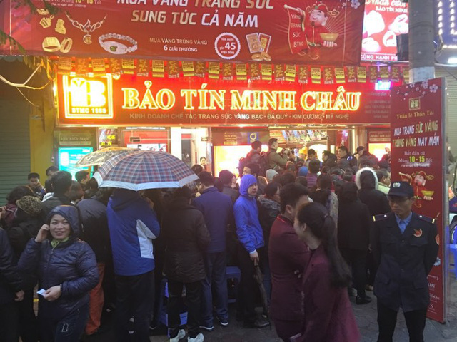 Theo một số người dân sống quanh "phố vàng" Trần Nhân Tông (Hà Nội), ngày lễ Thần Tài năm nay, lượng khách đến xếp hàng tại các cửa hàng vàng đông hơn so với năm ngoái. Theo một người dân sống tại đây: “Năm ngoái hơn 5 giờ nhưng khá lèo tèo, năm nay chắc làm ăn được nên mưa mà vẫn thấy rất đông người xếp hàng mua vàng”.
