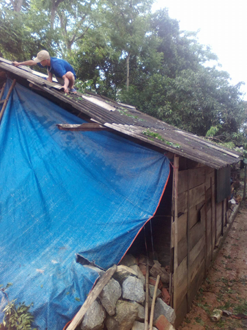 | Một người dân đang sửa lại mái nhà. Ảnh: Dân Trí |