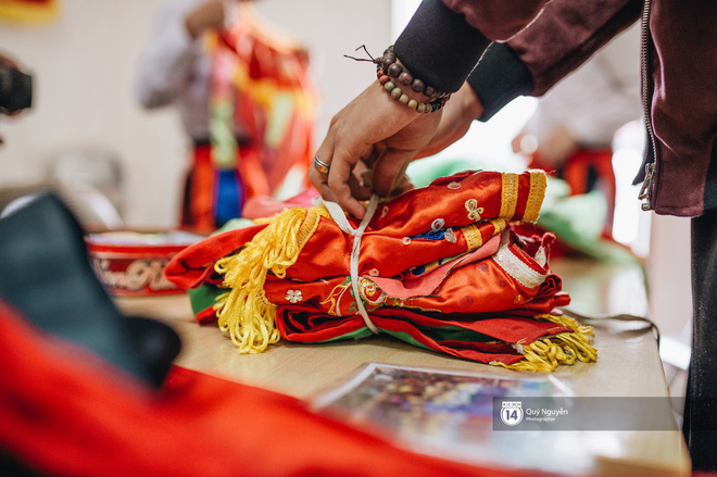 Từ quần áo tới đôi giày trắng, bộ phấn son trang điểm đều được chuẩn bị kĩ lưỡng trước mỗi lần diễn ra hội làng.