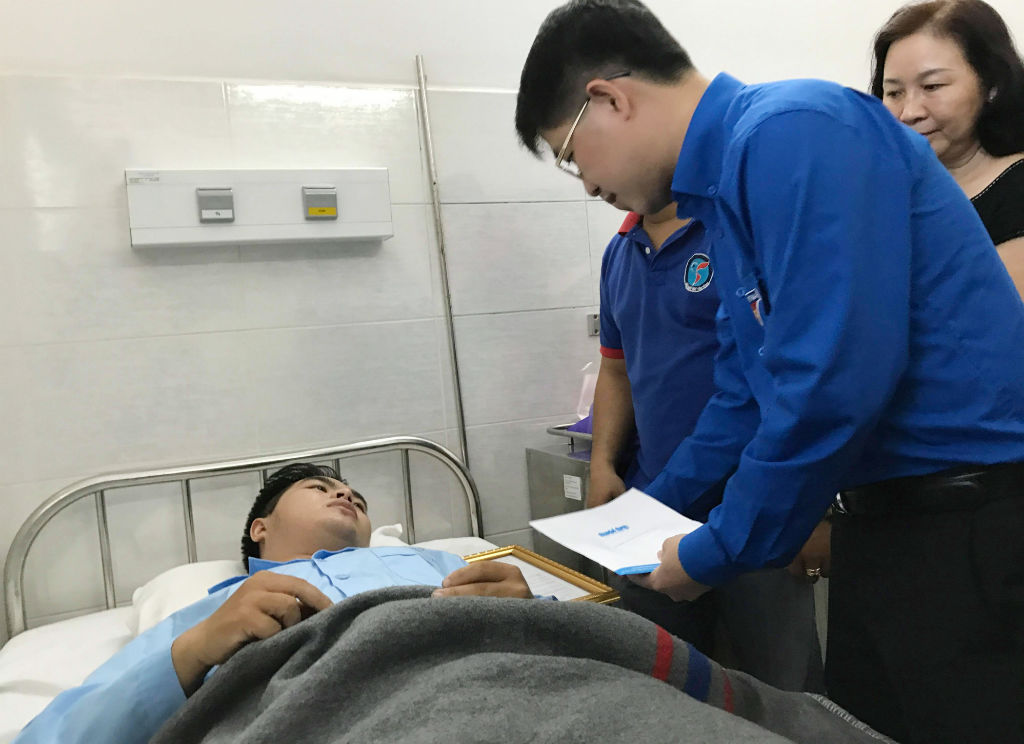 Cũng trong chiều cùng ngày, Trung ương Đoàn TNCS Hồ Chí Minh đã có buổi thăm hỏi và trao tặng huy hiệu Tuổi trẻ dũng cảm cho hai hiệp sĩ Nguyễn Đức Huy (22 tuổi, ngụ quận Tân Phú) và Đinh Phú Quý (22 tuổi, ngụ quận Củ Chi) tại Bệnh viện Thống Nhất. Ông Phạm Hồng Sơn, Bí thư thành đoàn TP.HCM đã thay mặt Đoàn đến tuyên dương, trao tặng bằng khen và huy hiệu cho hai hiệp sĩ tuổi đời còn rất trẻ này.