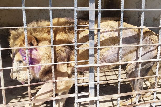 Hình ảnh một con sư tử bị bỏ đói. Ảnh: Mirror |
