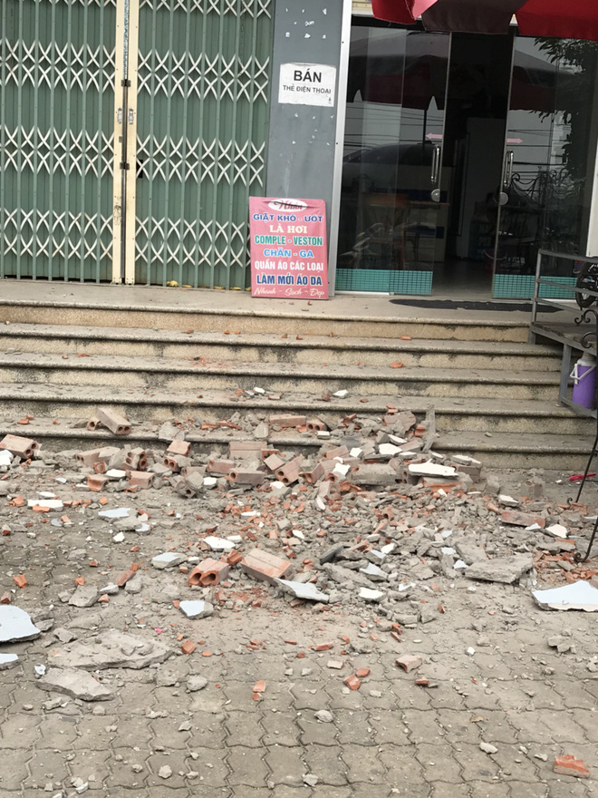 Chị Hồng Anh - chủ một quán tạp hóa tầng 1 khu chung cư cho biết, vào thời điểm xảy ra vụ việc, chị thấy viên vữa rơi trúng chiếc ô trước cửa nhà cứ nghĩ là rác từ trên ném xuống nhưng khi vừa quay lưng thì bất ngờ nghe tiếng như tiếng nổ quay lại thì thấy một đống gạch rơi giữa sân.