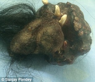 Ngay sau đó, anh đã được gia đình đưa đến bệnh viện để tiến hành kiểm tra và máy chụp X-quang đã phát hiện một bào thai bị dị dạng nặng đến 2,5 kg có xương, răng và tóc trong bụng của anh.